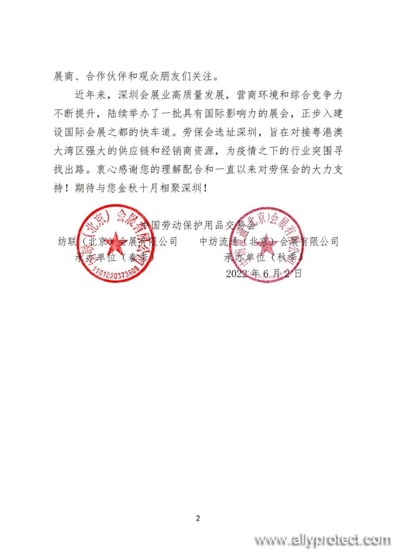 近年來,深圳會展業(yè)高質(zhì)量發(fā)展,營商環(huán)境和綜合競爭力不斷提升,陸續(xù)舉辦了一批具有國際影響力的展會,正步入建設(shè)國際會展之都的快車道。勞保會選址深圳,旨在對接粵港澳大灣區(qū)強大的供應(yīng)鏈和經(jīng)銷商資源,為疫情之下的行業(yè)突圍尋找出路。衷心感謝您的理解配合和一直以來對勞保會的大力支持!期待與您金秋十月相聚深圳!