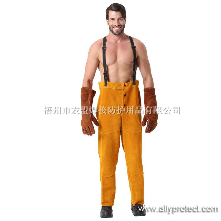 - 產品描述: 金黃色牛二層皮全皮焊褲,能夠在焊接飛濺嚴重的環(huán)境中,給使用者的身體提供安全有效的保護。