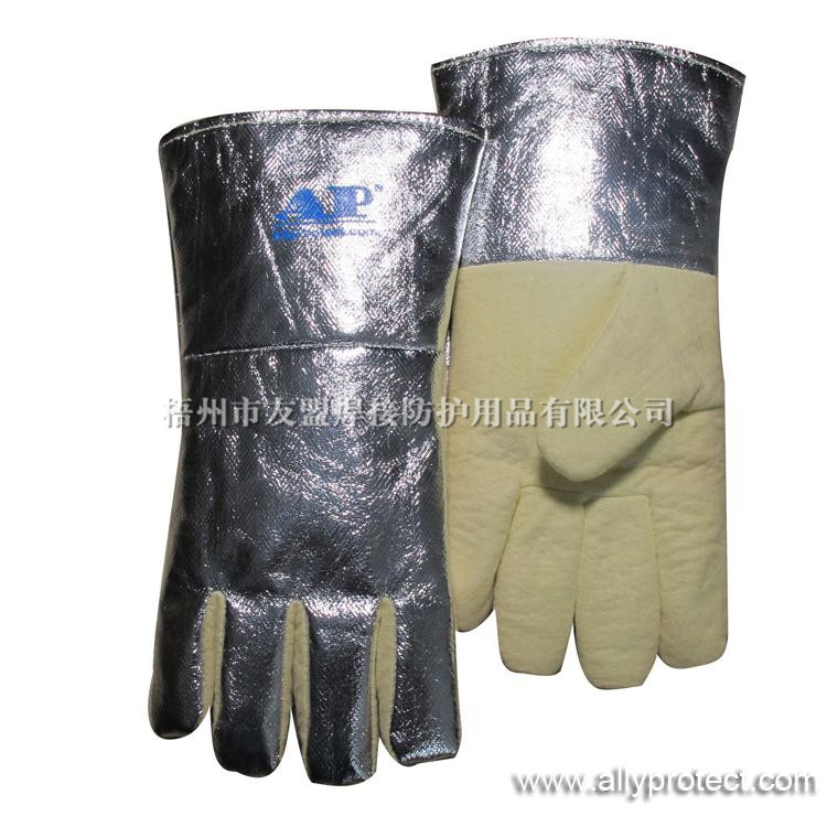 - 產(chǎn)品描述: 選用耐高溫材質(zhì)制成,手背和手腕部分包覆反光鋁,最高耐溫達(dá)600度。防切割等級(jí)為3。