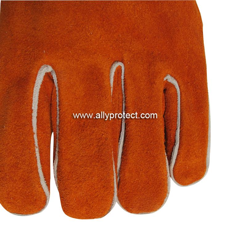 - 產(chǎn)品描述: [ AP ]銹橙色牛二層皮全皮電焊手套,直拇指護(hù)縫設(shè)計(jì),適用于焊接、切割及搬運(yùn)等用途。
