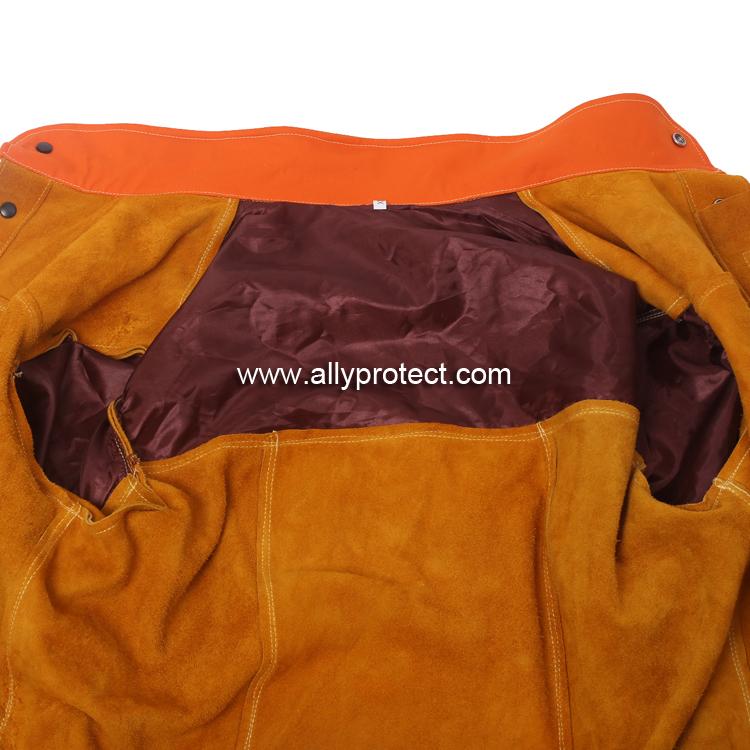 前胸防護條設計,防止燒焊飛濺物濺入衣內,雙層皮設計防止撕脫。